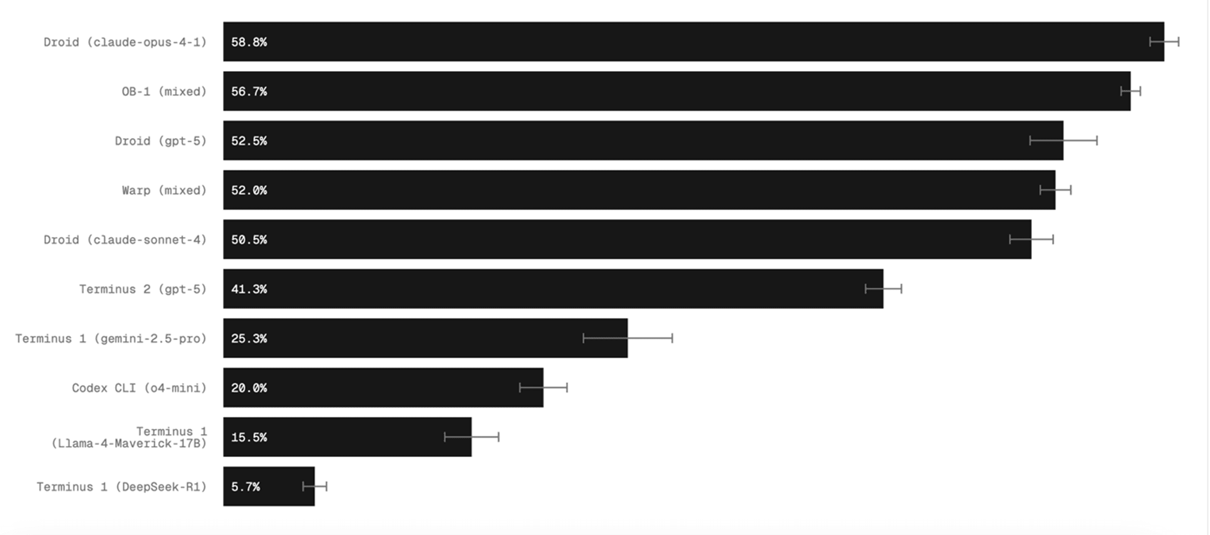 Not only this, but Droid is the best available CLI agent on Terminal Bench today with a score of 58.75%.
