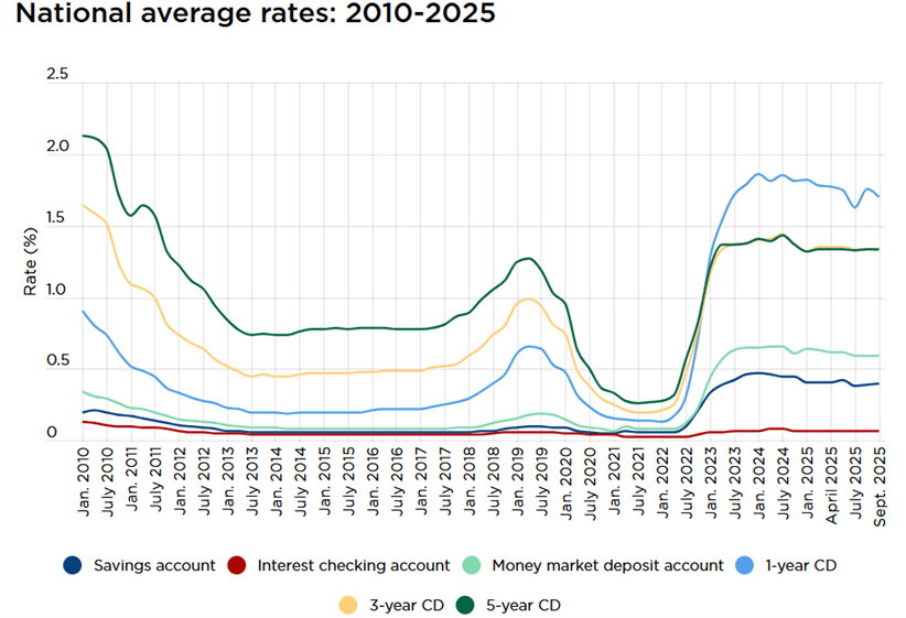 Source: Federal Deposit Insurance Corporation. (2025). National Rates and Rate Caps: Weekly Update, September 2025. Retrieved from https://www.fdic.gov/resources/bankers/national-rates/
