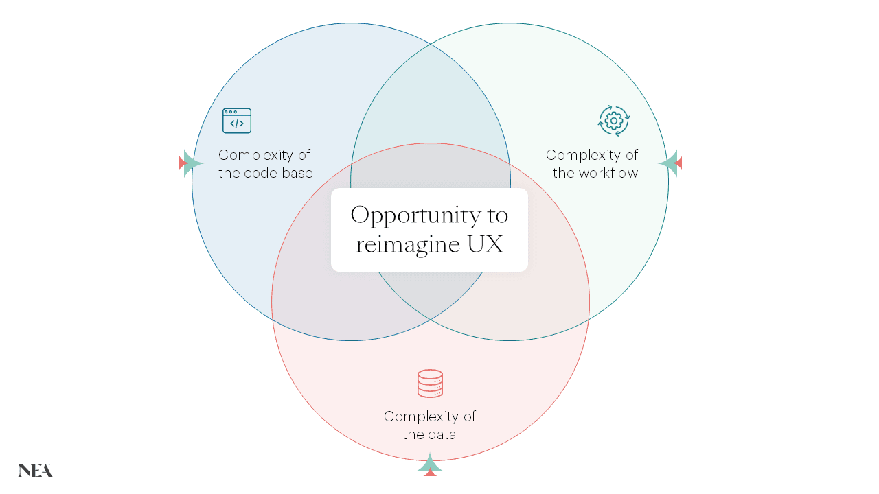 For startups, it is all about the ability to redefine the dev experience. Three core factors – the complexity of the codebase, the complexity of the workflow, and the complexity and availability of the data – tend to determine how much pain developers and organizations feel and the opportunity AI-native startups have to capture market share with new software development solutions.