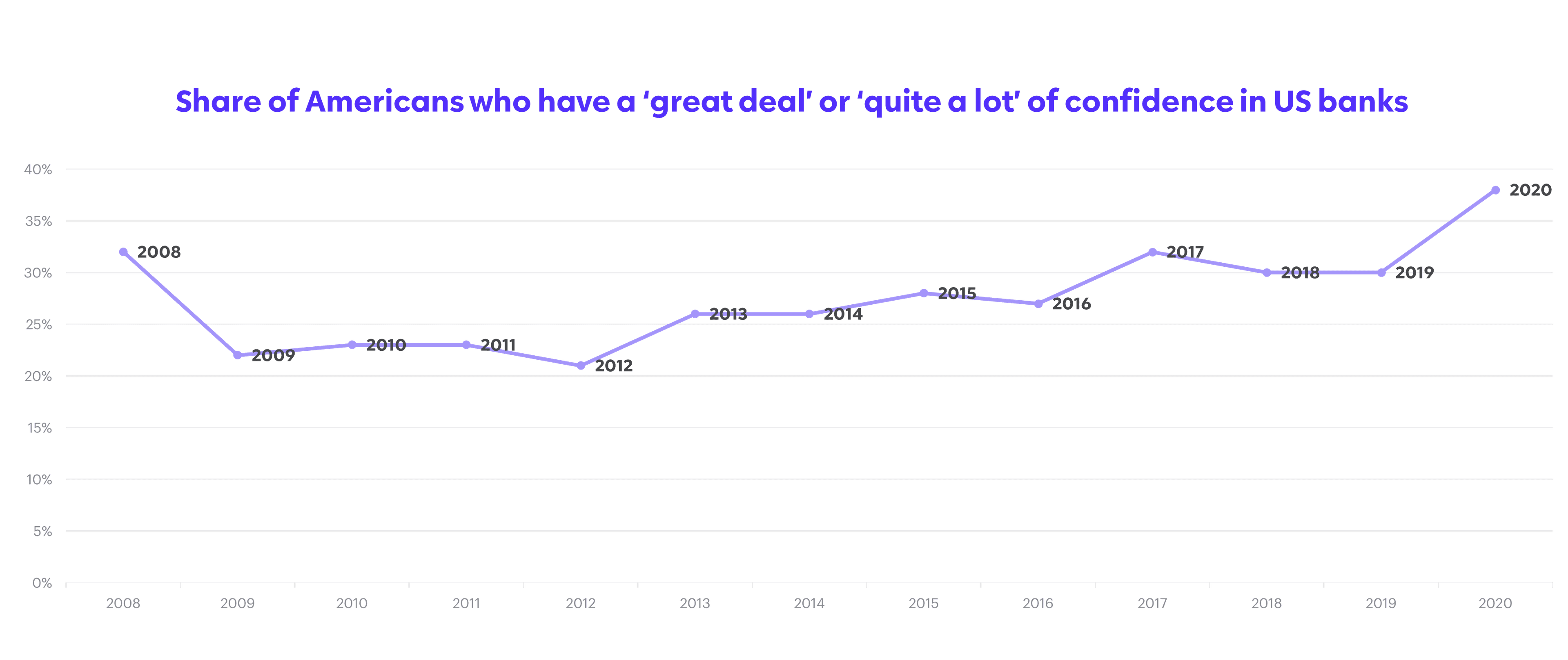 In 2020, consumer confidence in US banks finally rebounded from post-recession lows [10]