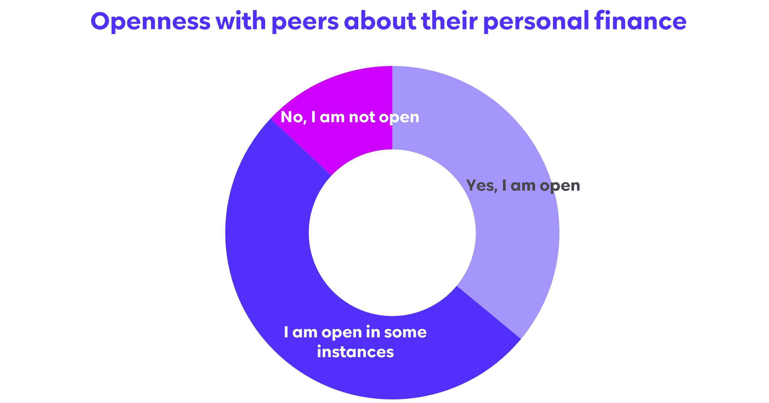 Personal finance, a traditionally private matter, no longer feels personal – at least to Gen Z. Over 90% of our respondents are totally or somewhat open about their finances with their peers: